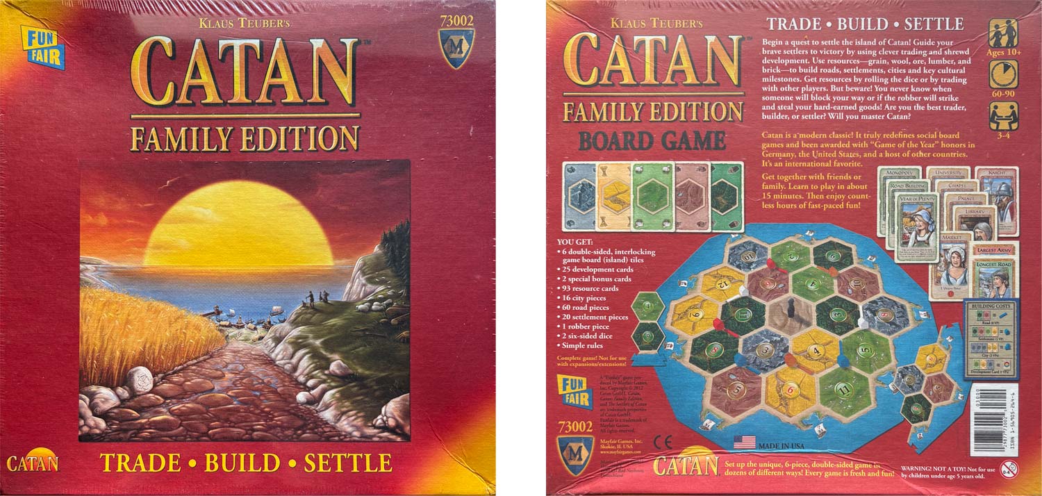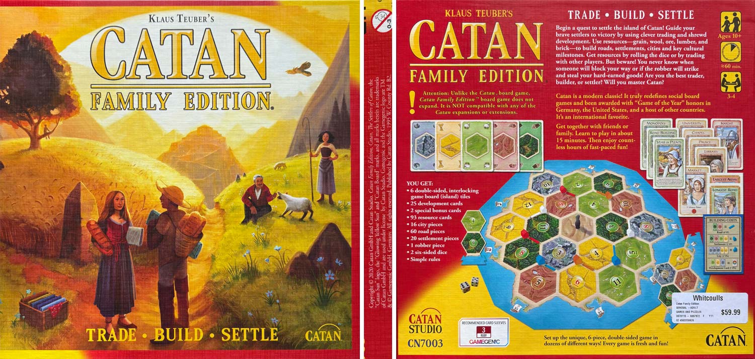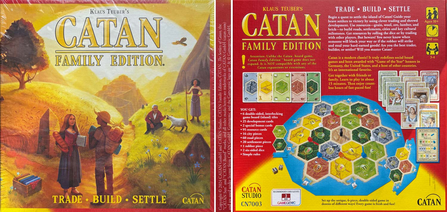 While the Family Edition has changed little over the years, there have still been quite a few releases. Below are the non-expandable versions of Catan I have in my collection: