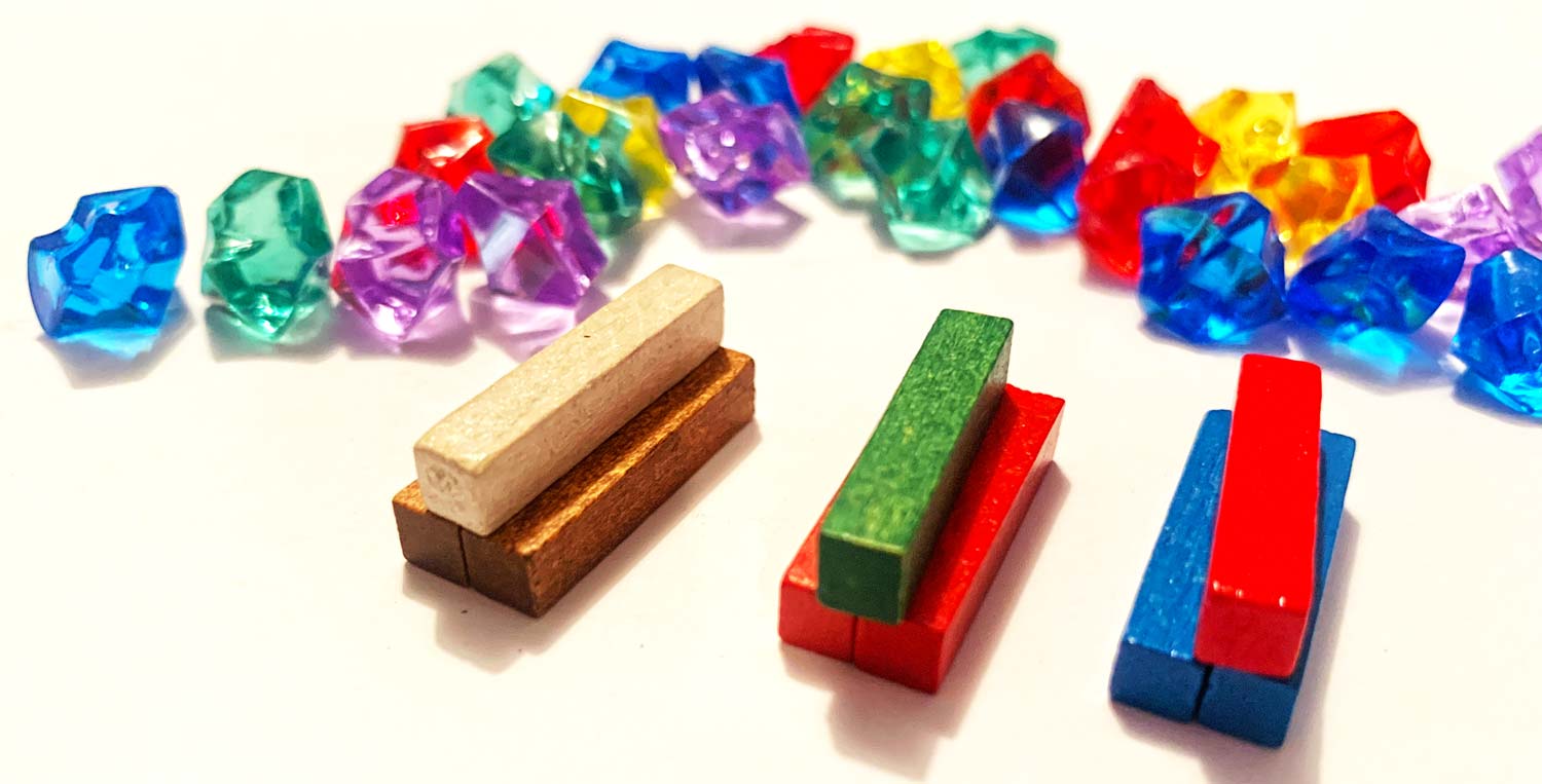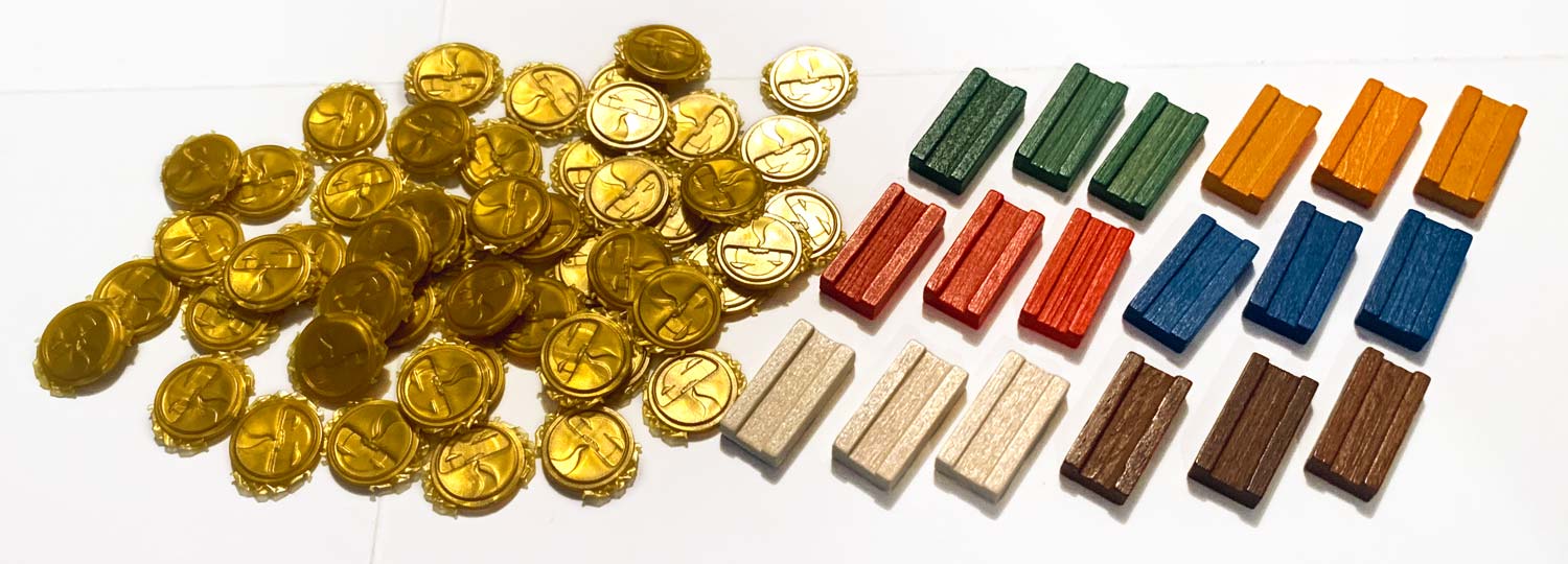 - Only on their turn any player can trade four gold coins for a resource of their choosing