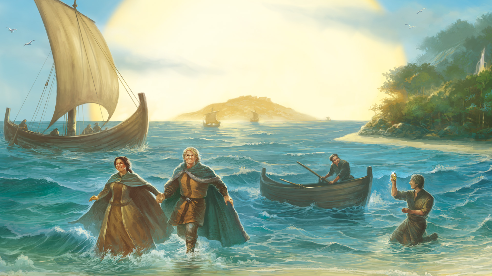While I have created this three panel version, Catan have already released a series of free wallpapers for people to use. Six of these images were made available on the Catan website in April 2020 during the Covid-19 lockdown. They were recommended to be used as a background for desktops or as virtual backgrounds for ZOOM meetings.