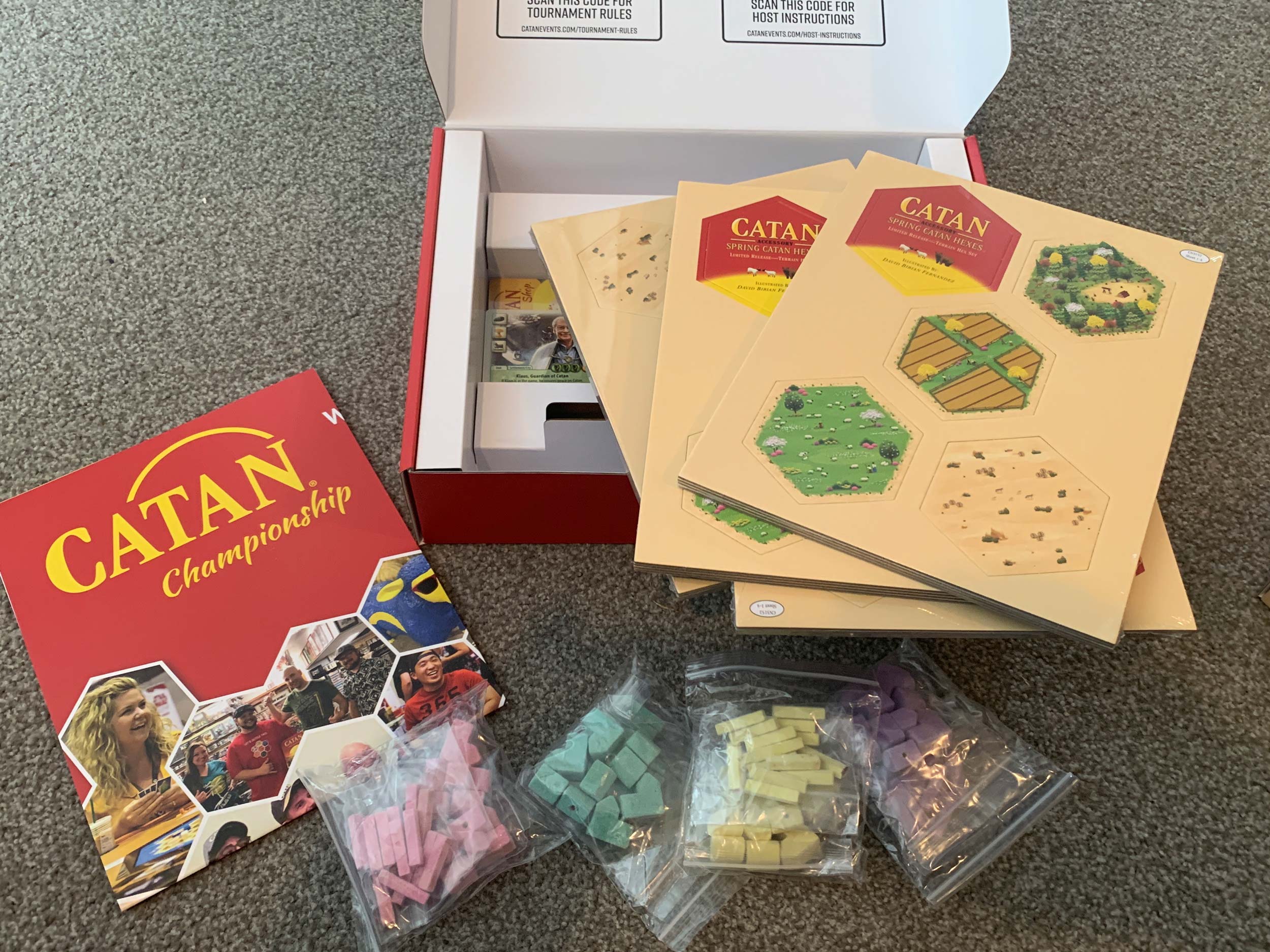 I was very fortunate to get the earlier boxes too. One through a friend in Sweden (who also sells Catan accessories including these amazing 3D sea chests) and one through an event that had no use for the box afterwards.
