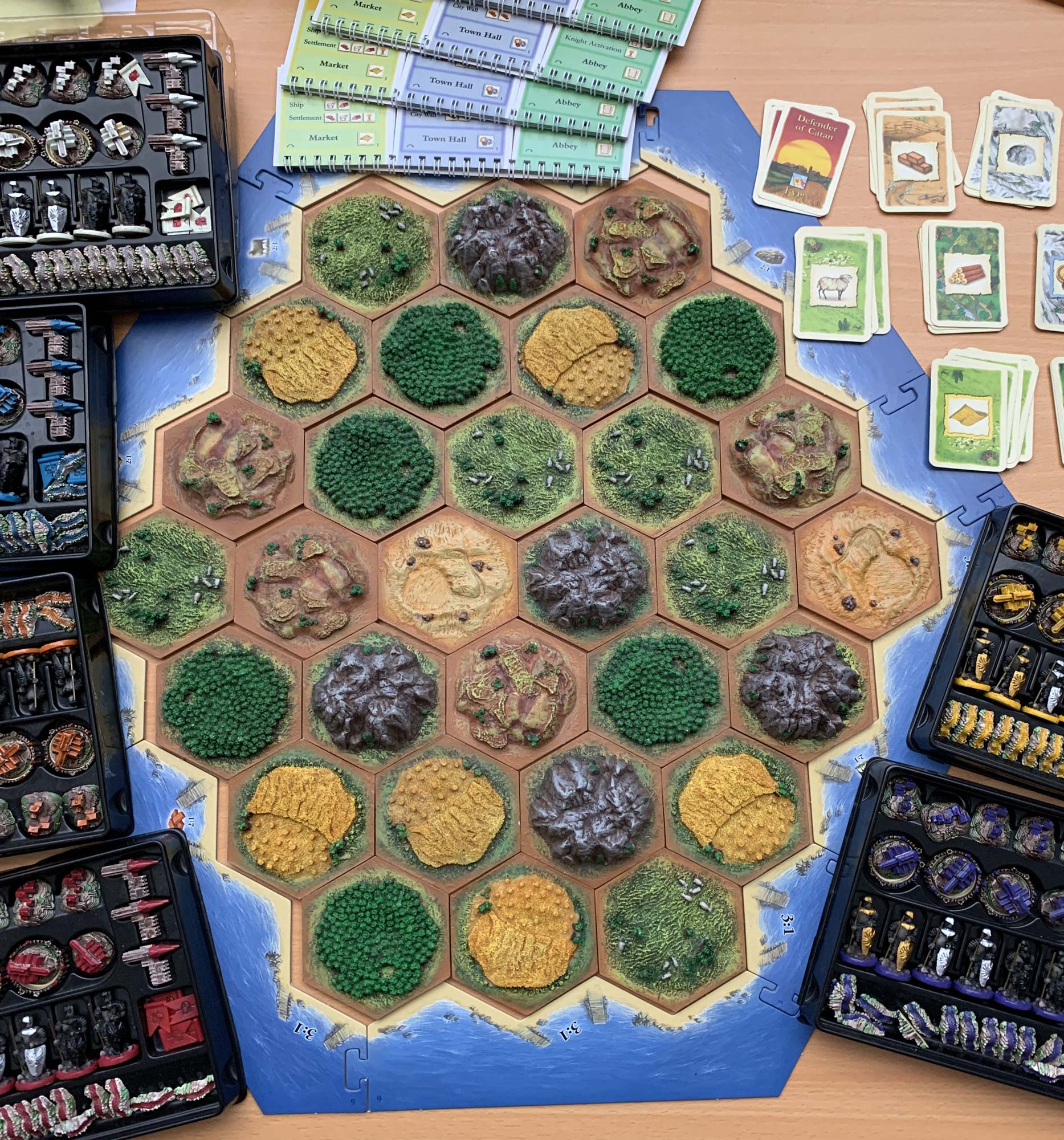 So after many years, and in part to celebrate 25 years of Catan, I have bought an incomplete 3D set and am using the bits out of this to make my own 3D 10th anniversary 5/6 player version of the game.