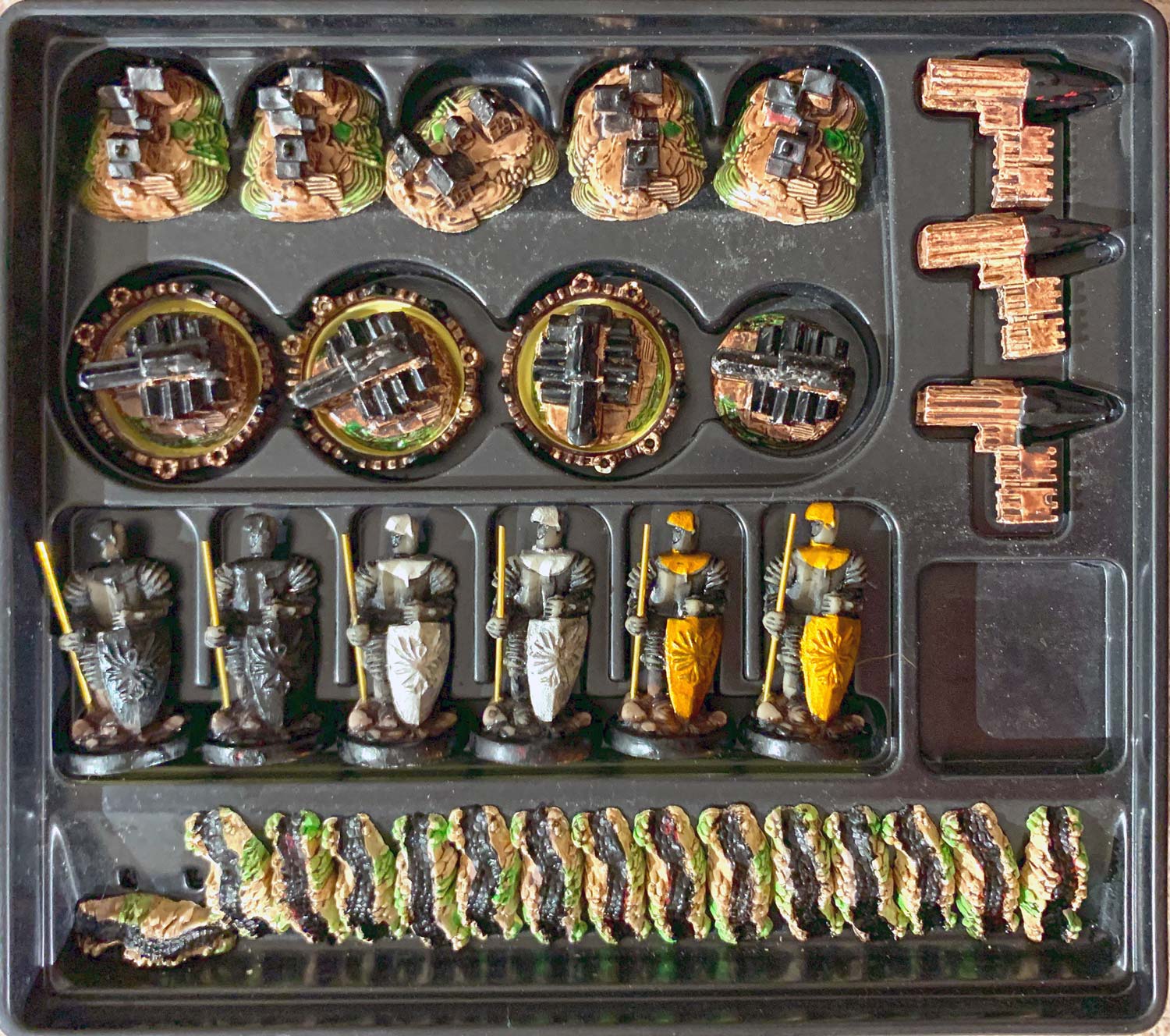 6 Knights (2 Basic, 2 Strong, 2 Mighty), 3 City Walls - 2 City Calendars